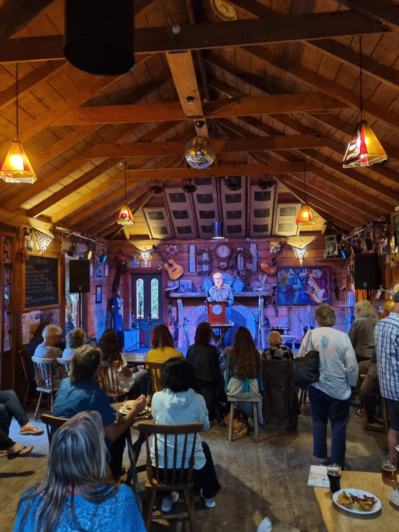 Abendessen im sympathischen Dorf-Izakaya. Barbara lässt sich - nach einem kräftigen Schluck Sake - auf das Karaoke-Duell mit den Einheimischen ein (Blackbird in einer für sie komplett ungeeigneten Tonart...)...