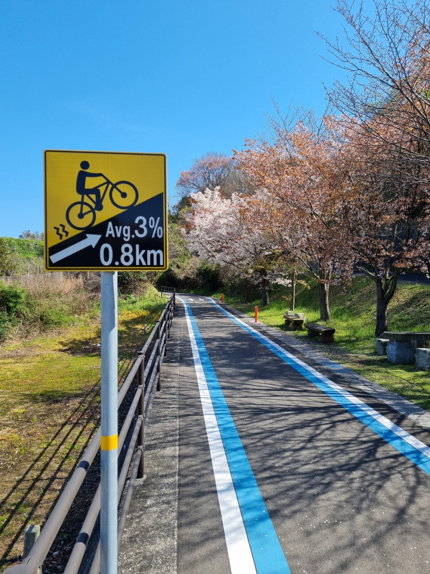 Japanische Präzision auch hier: Alle Auffahrtsrampen des Radweges zu den Brücken haben eine Steigungsrate von exakt 3% und können bis zu 1.5km lang sein.